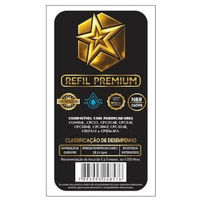 Refil de filtro compatível com purificadores Consul (CPC31, CPC31AB, CPC31AF, CPC30AB, CPC30AF, CPC35AB, CIX01AX, CPB36AFA). Retenção de Partículas Classe C (5 a 15µm). Tecnologia: Polipropileno Meltblown, Carvão Ativado com nanopartículas de prata coloidal. Aplicação: POU (ponto de uso).Bica móvel