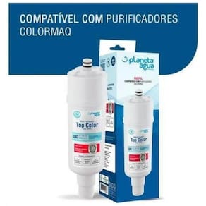 Refil filtro para purificador de água Colormaq. Vida útil de 4000 litros (6 a 9 meses), vazão de 60 litros/hora, retenção de partículas classe C (5 a 15m), com redução de cloro livre.Tipo