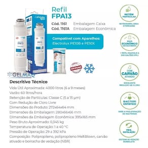 Compatível com purificadores Electrolux modelos PE10B e PE10X.