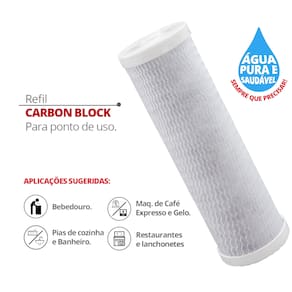 Refil para purificador de água ponto de uso. Elimina cheiros e gostos de cloro, resíduos de sujeira, areia, barro e ferrugem. Proporciona água cristalina e pura. Capacidade de 4.000 litros. Alta vazão de filtração. Refil descartável, não necessita limpeza ou retrolavagem. Material 100% atóxico.Tipo