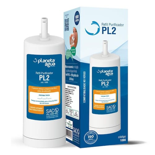 Refil compatível com Latina Purifive, Vitamax, PA731, PA735, PN535. Vida útil aproximada de 3000 litros (6 a 9 meses), vazão de 50 litros/hora, retenção de partículas Classe C (5 a 15um), com redução de cloro livre, água alcalina e ação bacteriostática.Tipo