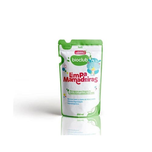 Refil Limpa Mamadeiras - Bioclub O Refil Limpa Mamadeiras é ideal para repor o detergente queridinho das mamães, deixando as mamadeiras sempre higienizadas e limpinhas.Não há nada melhor que economizar de forma sustentável, não é mesmoCom o mesmo carinho e qualidade, queremos cuidar dos pequenos e ajudar o planeta com a redução de impactos ambientais, de lixos e gases.Você pode dar uma nova vida ao frasco do Limpa Mamadeiras, ao escolher o refil. Os sachês são feitos com menos plástico do que a embalagem original. 3Confira os benefícios do queridinho das mamães, Limpa Mamadeiras:- Alto poder desengordurante- Máximo desempenho na eliminação de odores- Praticidade e rapidez- Hipoalergênico- Não resseca as mãos Características:- Apresentação do produto: sachê com 500ml.- Fórmula não contém: Álcool, flúor, triclosan, parabenos, glúten, corantes artificiais e produtos de origem animal. Não é testado em animais.- Validade: 24 meses a partir da data de fabricação.- Armazenamento: conserve em local fresco, seco e ao abrigo da luz solar direta.- Modo de Usar: Corte o Sachê do Refil Limpa Mamadeiras no local indicado, em sequência coloque no frasco regular. Para melhor desempenho, utilize água quente para realizar a higienização. Após a limpeza enxágue com água abundante. Depois de limpa, é recomendável usar escovas especiais que poderão chegar a todas as partes que não tenha conseguido limpar no passo anterior. Insista, principalmente, na rosca da mamadeira e nas bordas interiores, tanto do recipiente como do bico.- Deixe secar cada uma das peças separadas em um lugar limpo e arejado. É muito importante não guardar a mamadeira montada, ou seja, guarde-a com as peças separadas. INFORMAÇÕES DE SEGURANÇAUso Externo. Não ingerir. Evite o contato com os olhos. Em caso de ingestão ou contato com os olhos consulte o Centro de Intoxicação pelo telefone 0800 722 6001 ou atendimento médico. Mantenha fora do alcance das crianças e dos animais domésticos.