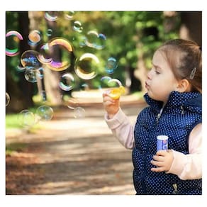 Divirta-se criando bolhas de sabão de diversos tamanhos e formas.