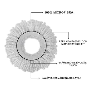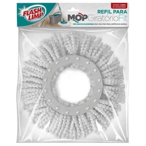 Serviços domésticos podem ser demorados e cansativos, mas o mop giratório flash limp fit veio para acabar com esse problema. Tenha em casa um produto que substituirá todo o aparato de vassoura, pano ou rodo. Tudo isso é possível porque o mop giratório flash limp fit remove a sujeira seca ou úmida com praticidade e ainda dá um acabamento final, lustrando seu piso com a qualidade e excelência que só a flash limp é capaz de oferecer. O refil do mop giratório flash limp fit é de fácil instalação. O refil deve ser trocado sempre que estiver gasto, e quando sujo basta lavá-lo e ele estará pronto para ser utilizado novamente. Troca do refil: