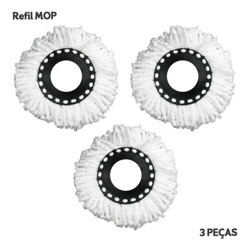 Refil Mop Giratório - Universal - Kit Com 3 Unidades - Cor Branco