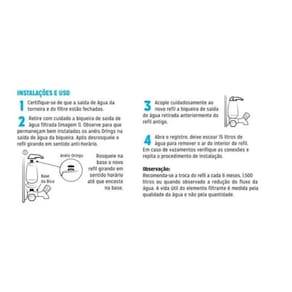A substituição do refil é recomendada a cada 1.500 litros, 6 meses ou quando observado redução do fluxo de água. Este refil não é lavável.
