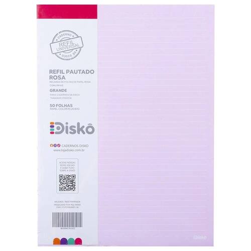 Refil Pautado Disko Rosa c/50 fls G 290X210cm Toque de Cor e Organização para Seu Caderno de Discos Mantenha seu caderno inteligente sempre vibrante e pronto para anotações com o Refil Pautado Disko na charmosa cor Rosa, no tamanho G Grande . Projetado especificamente para sistemas de discos, este refil garante que suas anotações sejam organizadas e seu material escolar tenha um toque de personalidade.