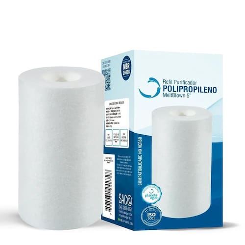 Refil de polipropileno para purificador de água, 5 polegadas, sem rosca, sistema de filtragem para eliminar impurezas sólidas, odores e sabores. Retém partículas acima de 15 micras.Tipo