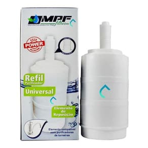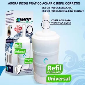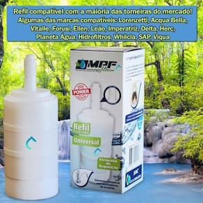 5 refil torneira filtro compatível lorenzetti acqua bella Kit com 5 peças - refil universal compatível com torneiras com filtro Compatível com os seguintes modelos: lorenzetti acqua bella, vitalle, imperatriz, delta, herc, forusi, ellen, sap, viqua e+, whilcla, entre outros. Serve nos filtros que usam rosca longa ou curta. Caso sua torneira use o filtro com rosca curta, basta cortar a rosca no ponto já indicado, assim ele servirá perfeitamente. A vela universal alcalina da mpf filtros, foi lançada com objetivo de deixar a sua água alcalina, que ajuda a equilibrar o ph do corpo, melhorando assim o nosso sistema imunológico e aumentando a capacidade do organismo em prevenir diversas doenças. O refil/vela da mpf filtros é o único que pode ser utilizado tanto como rosca curta como rosca longa, pois contém um sistema de corte simples no topo do elemento, identificado em sua caixinha para a fácil percepção do cliente. A vela/filtro, assim comumente chamada, conta com 4 etapas de filtragem, são elas: 1º polipropileno - retém partículas como barro, areia, ferrugem, entre outros contaminantes presentes na água. 2º carvão ativado com sais de prata - reduz gostos, odores e cloro, devido ao carvão ativado com prata que faz o papel de inibir a proliferação de bactérias. 3º alcalinização da água - aumento do ph da água, deixando-a ideal para o consumo humano. 4º polipropileno - clarifica a água em seu estágio final para que a mesma fique cristalina. Este refil/vela é um elemento de reposição compatível com purificadores de torneira. A troca é recomendada a cada 6 meses ou após percepção da diminuição do fluxo de água da torneira. --------------------------------------------------------------------------- Ficha técnica: Compatibilidade: purificadores de torneira Vida útil: 1.500 litros ou 6 meses Pressão de operação: 0,3 a 4,0 kgf/cm 3 a 40 mca Vazão: 20 litros/hr Retenção de partículas: classe c 5 a 15 micras Retenção de cloro livre: aplicável O filtro remove o cloro da água, elimina sabores, retém partículas de sujeira, barro, ferrugem, entre outras partículas. As marcas e produtos citados e ilustrados são propriedades de seus respectivos fabricantes e aparecem apenas para demonstrar a compatibilidade deste produto. --------------------------------------------------------------------------- Marca do refil: mpf Modelo: vela universal Eficiência da retenção de partículas: classe iii Eficiência da redução de cloro livre: aprovado Produto de acordo com a abnt nbr:16098:2012. Prazo de validade indeterminado até sua instalação. Pode guardar tranquilo O prazo para troca do refil passa a ser contado apenas após sua instalação. total contra defeitos de fabricação por um período de pelo menos 3 meses. O elemento filtrante pode saturar antes de sua vida útil prevista dependendo das condições da água de onde será instalado, como excesso de barro, areia, ferrugem e outras impurezas sólidas.
