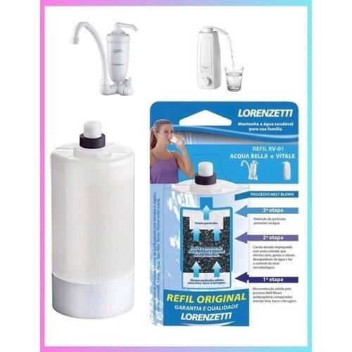 Refil para filtro de água com 3 etapas de purificação, retém partículas, reduz cloro, elimina odores e gostos, e evita bactérias. Fácil instalação.Tipo