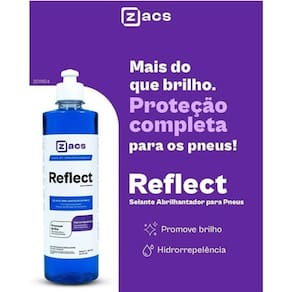 Reflect 500ml da Zacs é um selante abrilhantador de pneus que oferece brilho intenso, proteção duradoura e hidrorrepelência por até 45 dias, mantendo os pneus com aparência renovada e visual impecável.