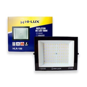 Refletor led Verifique as medidas do refletor e cor antes de efetuar a compra Certificados: ccc,ce,cqc,emc,fcc,lvd,rohs Fonte de energia: ca Nível de proteção ip66 Material do corpo: alumínio preto Tensão: 110-240v Potência: 100w Carcaça: alumínio cor preta Fluxo luminoso: 8000 a 10000lm Ângulo: 120º Voltagem: bivolt Vida útil estimada:25.000 horas Marca: Hi-Lux Led Ean: 0630941517215