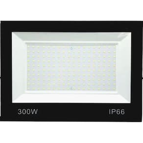 Temperatura de cor :6500k Branco Frio Tipo de Lâmpada: LED Proteção: IP 66 Potência: 300W Tensão: 100-250V Fluxo Luminoso: 24000lm Vida útil: 25000 Hrs Conexão: Bivolt IRC: 80 Fator de potência 0,5 Frequência: 50/60Hz Baixa emissão de calor Foco Direcionável Maior eficiência luminosa lm/W Não emite radiação infravermelha nem ultravioleta Ângulo abertura: 120