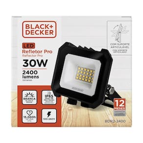 Produto: Refletor LED 30W 2.400 lúmens 6500K luz branca - Pro LED Marca: Black + Decker Voltagem: 110V/220VDescrição: O Refletor LED 30W 2.400 lúmens 6500K luz branca Pro LED da Black Decker foi projetado para oferecer iluminação de alta qualidade, este refletor LED de 30 W destaca-se pela sua impressionante capacidade luminosa de 2400 lm e uma cor de luz branca de 6500 K, proporcionando um ambiente claro e vibrante onde quer que seja instalado. Construído com resistência e durabilidade em mente, o Refletor Pro LED conta com uma robusta carcaça de alumínio e um design moderno que não só adiciona um toque de sofisticação ao seu espaço exterior como também garante uma vida útil longa de até 15.000 horas. Graças ao seu índice de proteção IP65, ele é perfeito para áreas sujeitas a intempéries, como jardins, garagens e fachadas de edifícios. Características: • Alta Luminosidade: Com um fluxo luminoso de 2400 lm, proporciona uma iluminação clara e ampla, ideal para áreas externas e internas que requerem boa visibilidade. • Eficiência Energética: Potência de 30 W, garantindo economia no consumo de energia comparado a soluções de iluminação tradicionais. • Durabilidade: Vida útil prolongada de 15.000 horas, reduzindo a necessidade de substituições frequentes. • Resistente à Água: Classificação IP65, perfeito para resistir a condições climáticas adversas, ideal para jardins, garagens e outras áreas externas. • Material de Alta Qualidade: Fabricado em alumínio resistente, oferece durabilidade e um acabamento sofisticado. • Design Moderno: O acabamento moderno e a qualidade da marca Black & Decker promovem uma aparência premium para qualquer ambiente. • Instalação Simples: Vem com conector de cabo que facilita a instalação em diversos locais sem a necessidade de grandes ajustes estruturais.Especificações: Potência: 30 WTensão: 100-240VFrequência: 50/60 HzCorrente: 240/232 mAFator de Potência: ≥ 0,5Conector: CaboTemperatura da Cor: 6500 KFluxo Luminoso: 2400 lmVida Útil: 15.000 hÂngulo de Facho: 120ºGrau de proteçâo: IP65IRC: ≥ 70Material: alumínio. Marca: Não Informado