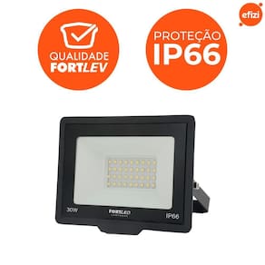 O Refletor LED 30W 3000K Fortled é uma excelente opção para iluminar o exterior da sua casa, desde garagem até jardim! Possuindo o selo de proteção IP66, o Refletor Fortled é totalmente protegido contra a poeira e a prova de água.