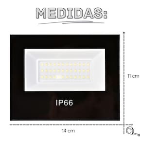- potência: 50w - temperatura de cor: branco frio 6500k - modelo: slim - material: alumínio e vidro - carcaça: alumínio cor preta - vida útil estimada de até 50. 000 horas - luminosidade: 5000 lúmens - voltagem: ac100-240v bivolt - ângulo abertura: 120 - certificação: ce - proteção: ip66 - dimensões: 14,7x11x2,5cm