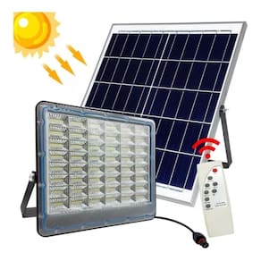 Marca TasbelModelo SolarPotencia 400 W Voltagem SolarOTipo de lâmpada: LED Instalação do refletor: montávelInclui lâmpada: SíCon sensor de movimento: NoEs à prova de água: SiEs sem fio: NOUnidades por embalagem: 1Com controle remoto: SíPeso: 2,45 kgEspecificaciones foco LED - Potência: 400W.- Grau de proteção: IP66.- Tipo de luz: LED.- Número de luzes LED: 288.- Possui luzes LED de alta qualidade e brilho.- Temperatura da cor: 6500K.- Controle remoto.- Bateria: De íons de lítio - De carga rápida, longa duração e grande capacidade.- Vida útil: 50000 horas (LED) .- Material: Engenharia ABS (Acrilonitrila butadieno estireno = acrilonitrilo butadieno estireno) .- Design impermeável e seguro, que protege de água, pó e vento.Especificações do painel solar- Potência máxima (Pmax): 18W.- Tensão em potência máxima (Vmp): 5V.- Corrente máxima em potência (Imp): 3.5A.- Abertura do circuito de tensão (Voc): 6V.- Corrente de circuito de circuito (Isc): 3.58A.- Tolerância de potência: +/- 3% .- De longa duração e grande capacidade.- Design impermeável e seguro, que protege de água, pó e vento.Medidas do produto- Foco LED: 29,2 cms. de ancho x 23,3 cms. de alto x 5 cms. de largo.- Painel solar: 34 cms. de ancho x 38,5 cms. de alto x 1,7 cms. de largo.- Cabo: 4 mts. y 15 cms. de largo aproximadamente.Peso do produto (Foco LED + Painel solar + Acessórios): 2,45 kgs.El paquete incluye- 1 solar Foco (con suporte incluido) .- 1 Painel solar.- 1 Suporte para painel solar.- 1 Controle remoto.- 1 Bolsa con tornillos y tuercas- 2 Pilas AAA (triple A) .- 1 Manual de usuario en idioma inglés