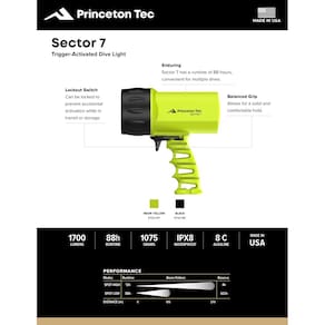 - LED Maxbright – o LED da mais alta qualidade disponível, o LED Maxbright da Princeton Tec é extremamente brilhante e eficiente; este único LED emite uma luz branca suave e potente, útil para uma ampla variedade de tarefas
