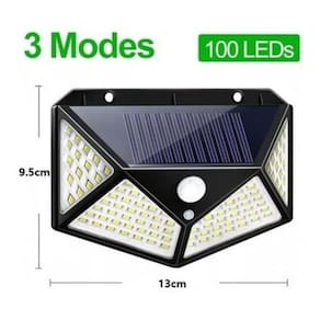 Descrição Super luminária solar 4 placas de 100 leds com 3 modos de operação de parede