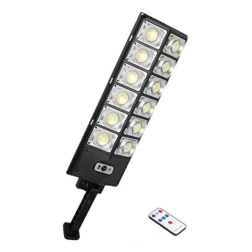 Refletor solar de 400 w, sensor de movimento, holofote, luz LED externa, lúmens: 16.000. Potência: 400W. Fonte de alimentação: Solar. Frequência: 50Hz. LED: 360. Vida útil: 50.000 hs. Cor: Preto.. Área de iluminação:/120m². À prova de água: IP65. Luz fria. Lentes de policarto DW de vidro. Ângulo de instalação sugerido: 15°. Iluminação: (4200 K°) - 15000 lm. Fator de potência: 0,989.. Tolera variações de tensão sem danos ou alteração de brilho. Distância do controle remoto: 15m Medidas de foco: -Comprimento 35cm-Largura 16cm. Medidas do painel solar - altura 50 cm - largura 17 cm. Controlado e configurado por controle remoto. Potência do controle remoto\ nConteúdo do pacote:\ n1 x 400w1 x Luz LED solar externa de controle remoto\ n3 x Parafusos de fixação\ n3 x Tarugos1 x Base de fixação