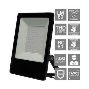 Refletor Taschibra TR Led 100W Luz Branco Fria 6500K Preto Bivolt