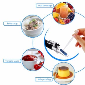 - Mede a concentração de açúcar em sucos de fruta, refrigerantes, bebidas lácteas, hidrossolúveis e cerveja artesanal/caseira