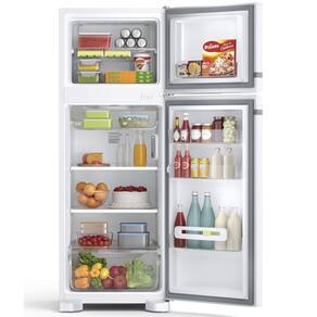 Geladeira Consul Frost Free Duplex 340 litros Branca com Prateleiras Altura Flex Tipo de Degelo: Frost Free Cor Principal -visao Frontal-: Branco Capacidade Total Liquida -l-:340 Metodo de Preparo: 1 Numero de Portas: 2 Painel de Controle: Interno Posicao do Freezer: Em Cima Voltagem: 127 V, 220 V Principais Diferenciais: Altura Flex: Com o exclusivo sistema de regulagem, as prateleiras podem ser ajustadas em ate 8 niveis de altura para acomodar itens de diversos tamanhos sem precisar tira-los da geladeira. Funcao Turbo: Resfrie sua geladeira muito mais rapido. Mais facilidade para quando ela esta cheia e para ocasioes especiais. Frost Free: Sabe quando chega a hora de limpar a geladeira e voce precisa esperar ela descongelar inteira? Entao, com uma geladeira Frost Free nada disso acontece! Isso por que ela possui uma tecnologia avancada que faz com que nunca se forme gelo nas paredes do congelador. Ou seja: voce nao precisa descongelar nunca. Especificacoes de Controle e Seguranca: Painel de Controle: Interno Tipo de Controle do Painel: Eletronico Tipo de Display: LED Controle de Temperatura no Refrigerador: Sim Numero de Niveis de Temperatura do Refrigerador: 5 Controle de Temperatura no Freezer: Sim Numero de Niveis de Temperatura do Freezer: 3
