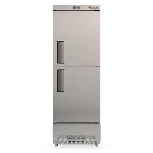 Refrigerador Comercial 2 Portas 572L GDR57AI Gelopar. Ideal para supermercados, padarias, lanchonetes, lojas de conveniência e similares. Conservação e exposição de frios, laticínios, bebidas, e alimentos diversos (não congelados). Temperatura: 0 a +7C. Refrigeração: Ar forçado com evaporador aletado. Microventilador eletrônico. Controlador eletrônico com indicador de temperatura. Degelo: Automático. Prateleiras revestidas em polietileno ou alternativamente em Aço Inox: 3 níveis + estrado, aramados e reguláveis. Portas cegas com puxador cava embutido e fechamento automático. Revestimento: Interno em Aço Inox 304 fosco. Externo em Aço Inox 304 escovado. Parte frontal com resistência no quadro de portas. Gabinete com rodízios. Construção do Gabinete: Monobloco. CAPACIDADE: 572L. FREQUÊNCIA: 60Hz. PESO: 92Kg. CONSUMO: 3,00kWh/dia. DIMENSÕES EXTERNAS(CxAxL): 67,5x202,6x88,9cm. Equipamento certificado conforme Portaria Inmetro n 148/2022. Refrigerador Comercial 2 Portas 572L GDR57AI Gelopar é na OverFrio.