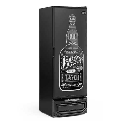 Refrigerador de Bebidas Gelopar Vertical 410 Litros Preto 127V GRBA-400 A Cervejeira Vertical é a solução ideal para a conservação e exposição de cervejas e uma variedade de bebidas refrescantes, incluindo água, sucos e refrigerantes. Com recursos avançados e um design elegante, este refrigerador é perfeito para manter suas bebidas geladas e prontas para serem apreciadas. A refrigeração ar forçado, aliada ao evaporador aletado, garante um resfriamento rápido e uniforme em toda a área interna, mantendo as bebidas sempre na temperatura ideal. Com opções de temperatura de -6C, -4C, +1C ou +3C no modo Economia, você pode ajustar facilmente de acordo com suas preferências. Com o degelo automático, você economiza tempo e esforço, pois o refrigerador cuida do processo de descongelamento sozinho Possui também prateleiras de 3 níveis: reguláveis e inclináveis, proporcionando flexibilidade para acomodar produtos de diferentes tamanhos e formatos. Adquira o seu hoje mesmo e experimente a excelência em refrigeração! Informações Técnicas Modelo: GRBA-400 Voltagem: 127V Consumo: 8,08kW/dia Capacidade Bruta: 410 litros Refrigeração: Ar forçado com evaporador aletado Temperatura: -6, -4, +1C ou +3C (Modo Economia) Degelo: Automático (frost free) Controlador eletrônico com indicador de temperatura 1 barra de LED interna superior Porta de vidro duplo temperado baixo emissivo (sem aquecimento) Porta sem aquecimento Prateleiras aramadas 3 níveis reguláveis Pés niveladores Peso: 98 kg Medidas Altura: 186 cm Largura: 64 cm Comprimento: 64 cm