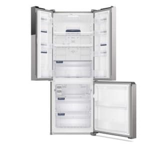 Geladeira compacta com 3 portas: Design inovador Fit the home com 3 portas e apenas 70cm de largura. Ideal para voce que tem um espaco mais compacto, mas nao abre mao de uma cozinha premium.