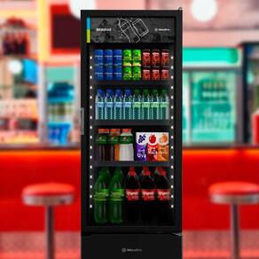 Expositor Refrigerador All Black 403 Litros VB40 Metalfrio. Ideal para bares, restaurantes, padarias, academias, farmácias, lan houses, mercados, lojas de conveniência e similares. Perfeita conservação e exposição para refrigerantes, sucos e águas. Sistema de Degelo: Frost Free: degelo automático. Controle de Temperatura: Termostato eletro-mecânico. Faixas de Temperatura: Refrigerador 2°C / 8°C. Prateleiras: 3 prateleiras reguláveis. Sistema de refrigeração com fluxo de ar contínuo. Iluminação em LED. Porta com vidro antiembaçante. Gás ecológico. Evaporador aletado. CAPACIDADE: 403 Litros. TEMPERATURA: Refrigerador 2°C/8°C. QUANTIDADE DE PORTAS: 1. PRATELEIRAS: 3 Reguláveis. POTÊNCIA: 360W. ARMAZENAMENTO: 504 Latas 269ml, 384 Latas 350ml, 336 Latas 473ml, 268 Garrafas 355ml, 140 Garrafas 600ml, 90 Garrafas 1l, 179 Pet 600ml e 60 Pet 2l. PESO: 91,4Kg. DIMENSÕES EXTERNAS(CxAxL): 67,5x189x62,2cm. Com os Selos de Qualidade ISO 9001 e de Gestão Ambiental ISO 14001. Expositor Refrigerador All Black 403 Litros VB40 Metalfrio é na Atau.