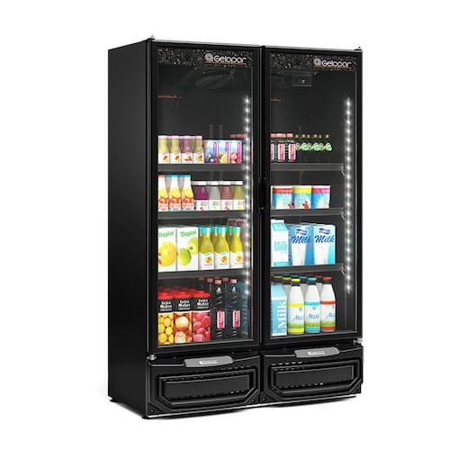 Refrigerador Expositor Gelopar 957 Litros Preto 127V GCVR-950 LB O Refrigerador Expositor foi projetado para conservação e exposição de bebidas, frios e laticínios. É ideal para mercados, padarias, lanchonetes, conveniências e demais estabelecimentos. Com refrigeração por ar forçado com evaporador aletado, esse Refrigerador proporciona uma distribuição uniforme de temperatura. Conta com faixa de temperatura de 0 a +7C, para você ajustar a temperatura de acordo com a necessidade dos seus produtos, mantendo-os sempre na condição ideal para consumo. Possui também prateleiras aramadas em 4 níveis reguláveis e inclináveis, permitindo que você ajuste o espaço conforme a necessidade dos produtos. Compre agora o Refrigerador Expositor e tenha garanta de qualidade, estilo e eficiência! Informações Técnicas Modelo: GCVR-950 Voltagem: 127V Consumo: 8,46kW/dia Capacidade Bruta: 957 litros Refrigeração: Ar forçado com evaporador aletado Temperatura: 0 a +7C Degelo: Manual Controle de Temperatura: Termostato Iluminação LED (interna), com interruptor Porta: Vidro duplo temperado baixo emissivo Fechamento automático Prateleiras aramadas 4 níveis reguláveis e inclináveis Pés niveladores Perfil porta etiquetas Peso: 94 kg Medidas Altura: 196 cm Largura: 129 cm Comprimento: 64 cm