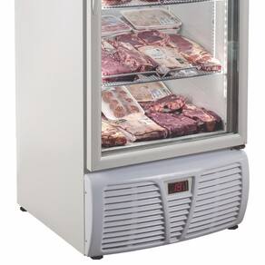 O Refrigerador Expositor Vertical para Carnes Frilux 570 Litros Branco Porta de Vidro Aquecido 220V RF-005-C é a escolha ideal para a conservação e exibição de carnes embaladas e produtos refrigerados que necessitam de temperaturas controladas. Com uma capacidade de 570 litros, este expositor oferece amplo espaço interno e é equipado com uma porta de vidro aquecido que mantém a visibilidade dos produtos enquanto evita o acúmulo de condensação. O sistema de refrigeração por ar forçado e o controlador digital integrado garantem uma temperatura interna estável e ajustável entre -5C e +5C, ideal para diferentes tipos de carnes e produtos refrigerados. As prateleiras reguláveis e inclináveis permitem uma organização prática, e a iluminação interna de LED na vertical destaca os produtos de forma eficiente e econômica. A porta com fechamento automático e os pés reguláveis adicionam funcionalidade ao uso diário, tornando este refrigerador uma opção prática e moderna para estabelecimentos comerciais.
