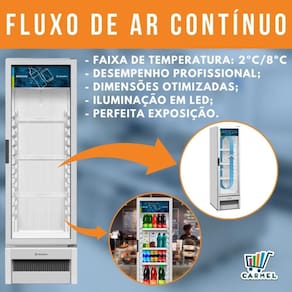 Sistema de refrigeração com fluxo de ar contínuo. Garante resfriamento rápido e uniforme em todas as bebidas, e rápida recuperação de temperatura, mesmo após frequentes aberturas de porta.