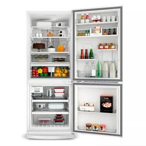 Uma Geladeira Duplex com degelo Frost Free, ou seja, não é necessário descongelar a geladeira para mantê-la limpa. Além disso, esse refrigerador possui vários compartimentos especiais, incluindo, gavetas para frutas e verduras, cesta de ovos e bandeja para latas / long necks.