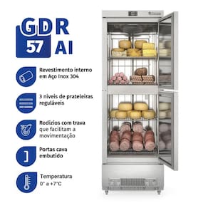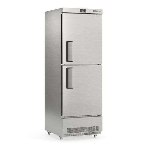 Ideal para a conservação e exposição de frios, laticínios, bebidas e alimentos diversos não congelados e conta com sistema de refrigeração por ar forçado com evaporador aletado, microventilador eletrônico e degelo automático. Possui controlador eletrônico com display de temperatura, três prateleiras reguláveis, portas cegas com puxador embutido e fechamento automático. Sua estrutura robusta é construída em gabinete monobloco, com revestimento interno em aço inox 304 fosco e externo em inox escovado, além de resistência na moldura das portas e rodízios com trava que facilitam o deslocamento.