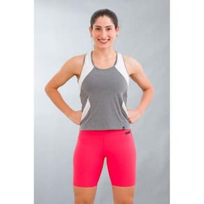 Características Detalhes em tecidos de cor e textura diferentes Estampa em poá, tela mesh preta e alças brancas Benefícios Respirabilidade Não retém suor Leve e confortável com elasticidade para livre movimentação Tecido tecnológico, não precisa passar Tabela de Medidas (em cm) Tam Único (P - M): Busto 86 cm; Comprimento 55 cm; Largura alças 4,5 cm Composição dos Tecidos Cinza: Poliamida: 86%; Elastano: 14%; Branco: Poliamida: 79%; Elastano: 21%; Tela Cinza = Poliamida: 90%; Elastano: 10%