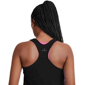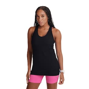 Regata feminina sem costura com decote nadador, toque leve e modelagem reta. Possui detalhes de furinhos, deixando a peça respirável e com fácil absorção da umidade. Ideal para atividades externas como corrida e beach tennis.