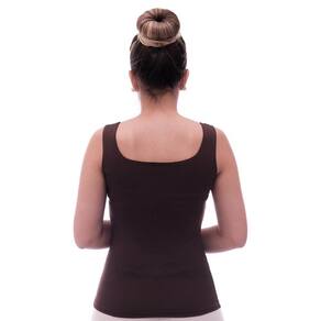 Regata feminina decote redondo, marrom, cor clássica, em tecido LIGHT CO2 biodegradável (fio AMNI SOUL ECO, o primeiro fio de nylon biodegradável do mundo), com fator de proteção solar 50FPS+ UVA e UVB.