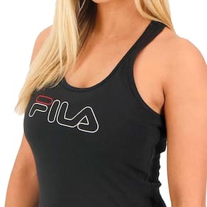 Com modelagem slim fit, a peça apresenta decote em U e costas nadador, proporcionando um visual moderno e esportivo. O acabamento em viés pespontado nas cavas reforça a durabilidade, enquanto o logo Fila Letter Outline em silk centralizado na parte frontal superior adiciona um toque de autenticidade.
