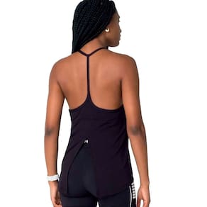 Sua modelagem regular conta com alças em viés de 1 cm, barra arredondada e um detalhe funcional: abertura vertical nas costas com travete, permitindo a amarração do tecido para maior ventilação e versatilidade. Além disso, seu design moderno traz decote ovalado, costuras ergonômicas e barra traseira alongada, proporcionando um ajuste perfeito ao corpo.