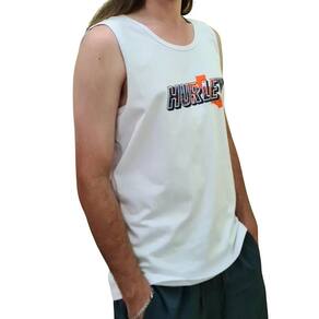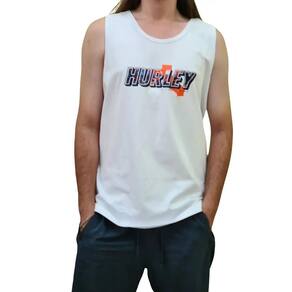 Regata Hurley feita em meia malha 30.1, estampa localizada base d'agua e etiqueta clips ONE&ONLY na barra.