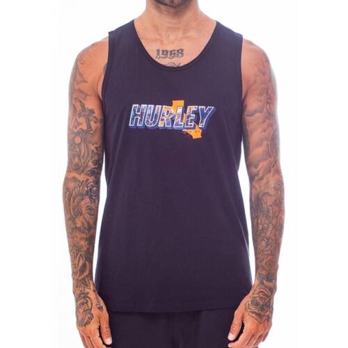 Regata Hurley feita em meia malha 30.1, estampa localizada base d'agua e etiqueta clips na barra.