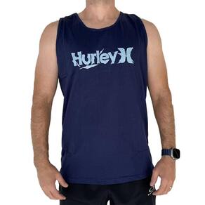 Regata Hurley feita em meia malha 30.1, estampa localizada base d'agua e etiqueta clips ONE&ONLY na barra.