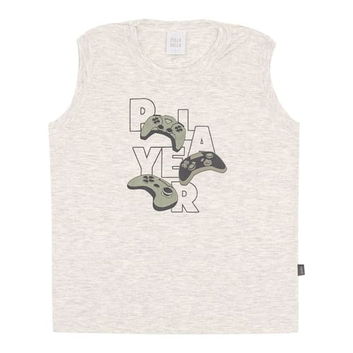 Os jogadores de plantão irão adorar se divertir com os amigos estando fresquinho e confortável! Regata meia malha na cor mescla banana com gola redonda e estampa frontal de controle de video game e escrita Player em gel relevo. Os amigos juntos para vencer o chefão e estando no estilo com Pulla Bulla!