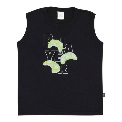 Os jogadores de plantão irão adorar se divertir com os amigos estando fresquinho e confortável! Regata meia malha na cor preta com gola redonda e estampa frontal de controle de video game e escrita Player em gel relevo. Os amigos juntos para vencer o chefão e estando no estilo com Pulla Bulla!