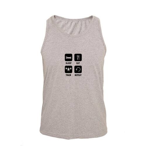 Regata Masculina Algodão Sleep Eat Train Repeat Básica - Cinza - G