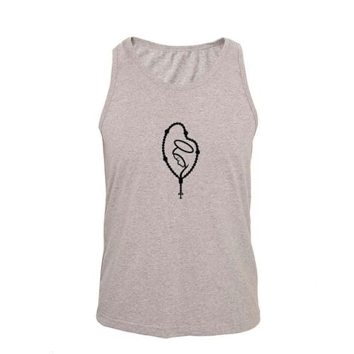 Regata Masculina Algodão Terço Maria Estampada Verão Moderna - Cinza - P