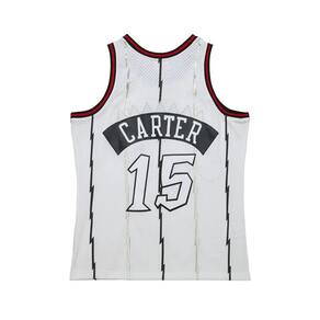 Vince Carter teve uma passagem icônica pelo Toronto Raptors na NBA. Também apelidado de "Vinsanity", foi fundamental para elevar a visibilidade e o sucesso dos Raptors. Ele era uma força ofensiva dominante, capaz de pontuar de várias maneiras, incluindo arremessos de longa distância e infiltrações impressionantes. Durante sua passagem pelos Raptors, Vince Carter foi selecionado para vários All-Star Games consecutivos e foi nomeado o Novato do Ano da NBA em 1999. Ele ajudou os Raptors a alcançarem os playoffs regularmente e foi um dos principais responsáveis por colocar a franquia no mapa da NBA. Em homenagem a este grande atleta, a Mitchell & Ness eternizou a história de Vince Carter, nesta regata exclusiva. Não perca a chance de levar para casa um pedaço da história do basquete.