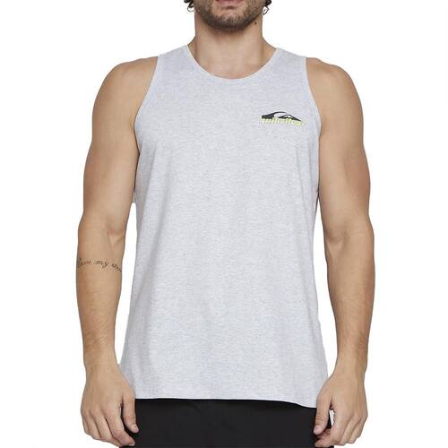 Regata QuikSilver feita em modelagem regular fit, meia malha, silk localizado no peito e nas costas com 4 core e etiqueta aplicada na bainha do lado esquerdo de quem veste.